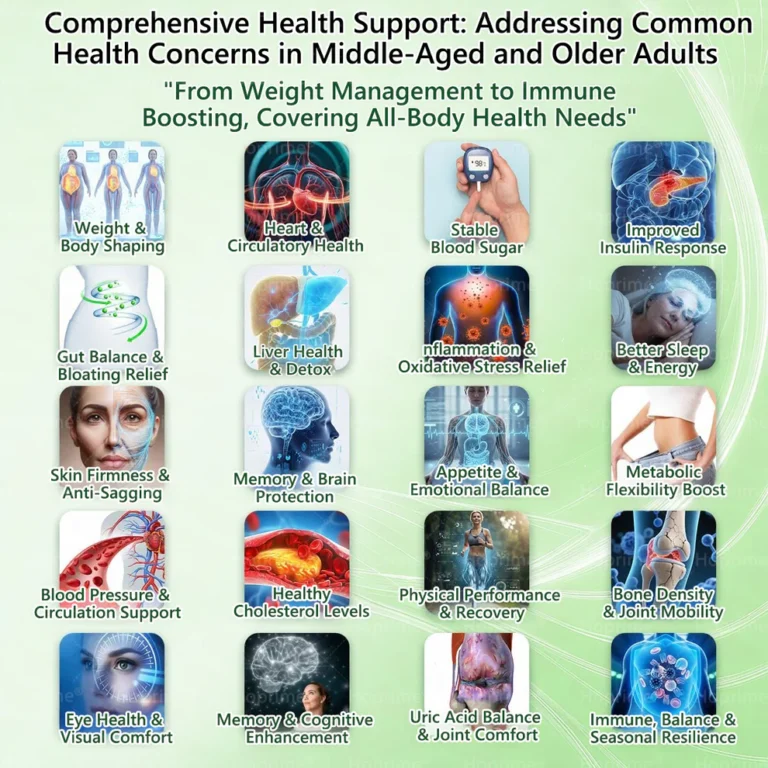 Benefits: Supports effective weight reduction and appetite regulation, stabilizes blood glucose levels, promotes cardiovascular health, reduces chronic low-grade inflammation, and helps alleviate metabolism-related fatigue.