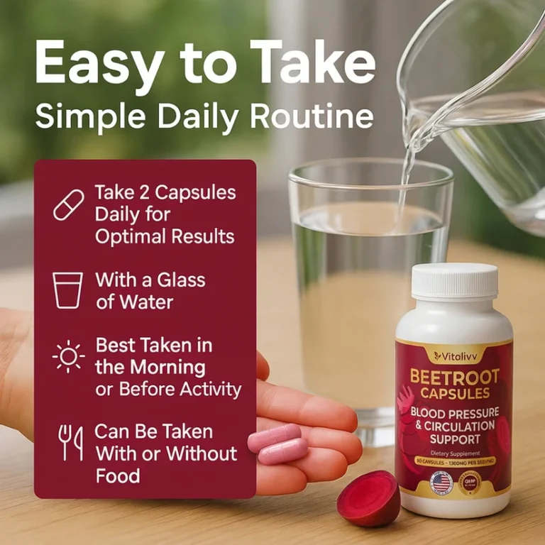 Most beet supplements look the same, but they don’t work the same. Vitalivv is made for people who actually want to feel a difference — in their energy, circulation, and blood pressure — not just get another bottle of red powder. Our formula delivers a clinical dose of real beet nitrates, is lab-tested for purity, and contains zero fillers, sugar, or artificial additives. No bad taste, no guessing, no gimmicks — just clean, proven support for natural nitric oxide, healthy blood flow, and steady daily energy in an easy capsule.